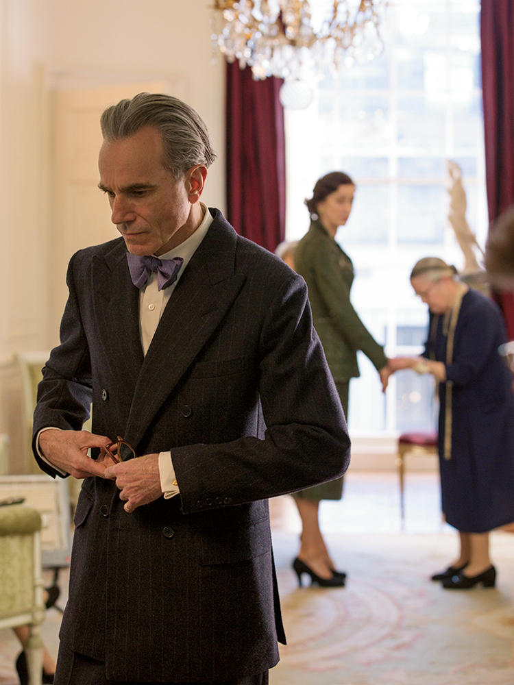 1950年代ロンドンで高級仕立て服を手掛けるウッドコック役のダニエル・デイ=ルイスが着るアンダーソン&シェパードに注目。「パッド入りなのにナチュラルショルダー、重い生地だが軽く見えるダブルスーツが粋」。