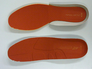 この普通タイプの中敷きも付属します。長距離を歩く場合や非常時用に会社のロッカーへの置き靴とするなら、こちらがオススメだそうです。