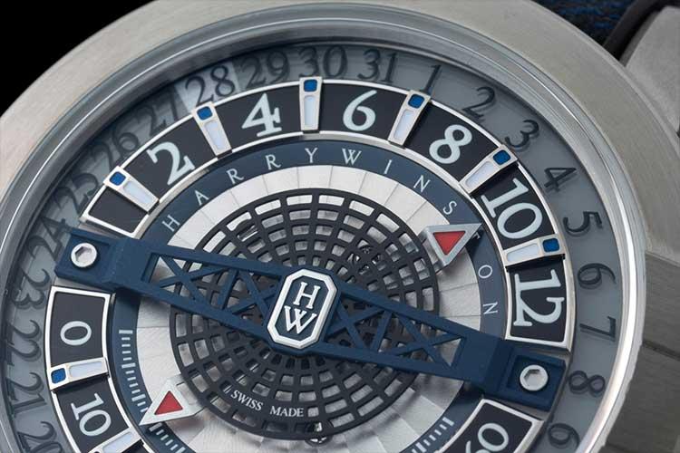 ちなみにセンターのサークルを上下に分ける青のブリッジは、ニューヨークのマンハッタン橋がモチーフ。ニューヨーク五番街に本拠を構える世界的な高級宝飾ブランド、ハリー・ウィンストンにふさわしいデザインだ。