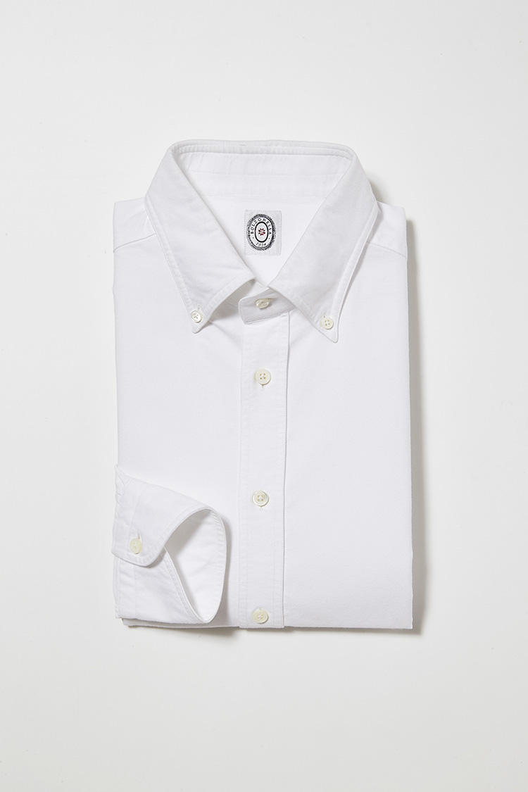 「白のオックスフォード生地のボタンダウンシャツ、ドットのニットタイ、黒のローファーという、クセのない定番アイテムでまとめたアメトラスタイルなら、万人に好かれやすく、取引先ウケも部下ウケも見込めます。月曜に着用したラルディーニのパッカブルスーツは、シワになりにくくイージーケアなタイプなので、仕事終わりにネクタイを外してもだらしなくなりません。」(ビームス プレス・安武さん)