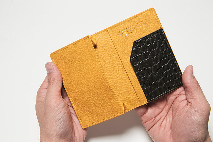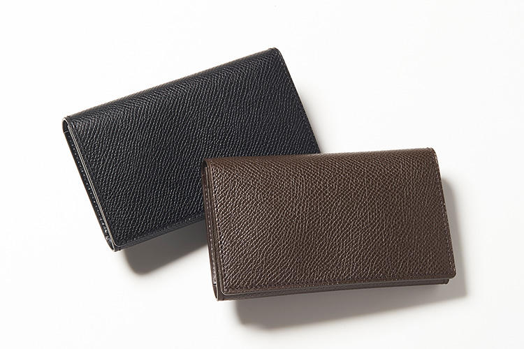 名刺入れは自分の鏡。営業職などで頻繁に名刺交換をする職種ほど、安っぽかったり、汚れていたりする名刺入れは、第一印象に響いてしまうかも……。また、もらった名刺を整理しきれずパンパンに膨れた名刺入れも、かなり見栄えがよくない。そこでおすすめなのが、ちょっといい革を使ったマチありの大容量タイプ。上質な革は自分を格上げしてくれるだけでなく、手間をかけて作っているため丈夫で長持ち。使い込んでもみすぼらしくならず、返ってそれが味にもなる。底までマチがある通しマチ式や、マチが伸縮するジャバラ式などタイプは様々あるが、スナップボタンやマグネットなどでフラップが確実に閉じるタイプであれば、中身が飛び出しにくくより安心だ。ある程度の名刺がたまっても膨れている感が出にくく、また大容量ゆえに自身の名刺も多めにストックできるので、「あ、名刺が足りなくなってしまった!」という心配も減りそうだ。