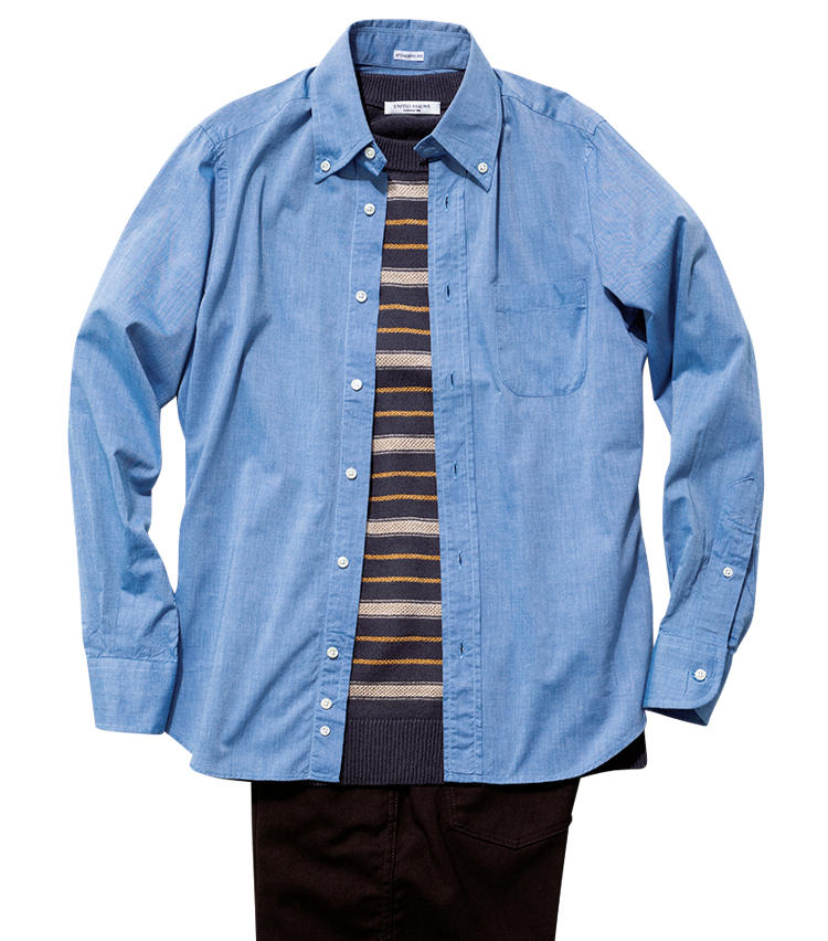 カジュアルは言うに及ばず、その爽やかで豊かな表情の生地感は、オンでも存在感を発揮する。これまでM.E.では伊のドレスシャンブレーを中心に推してきたが、オンオフの境目がゆるい今、米のカジュアルタイプまでその幅を広げてみた。