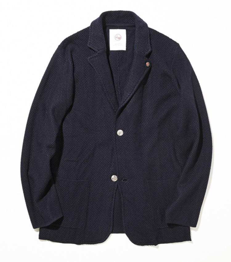 <p>ニットならではの快適な着心地を活かし、あらゆるゴルフシーンを想定したアイテムを提案するニットブランドのジャケット。ニット特有の通気性の良さはゴルフシーンにも好都合で、薄手で軽やかな着心地を実現する。パッチポケットに、上品なシェルボタンも休日らしいリラックス感を演出してくれる。ゴルフ場への行き帰りや日常着でも着用できる汎用性の高い一着。ポリエステル40%+アクリル21%+ナイロン20%+ウール19%。3万5000円(スタッツ)</p>