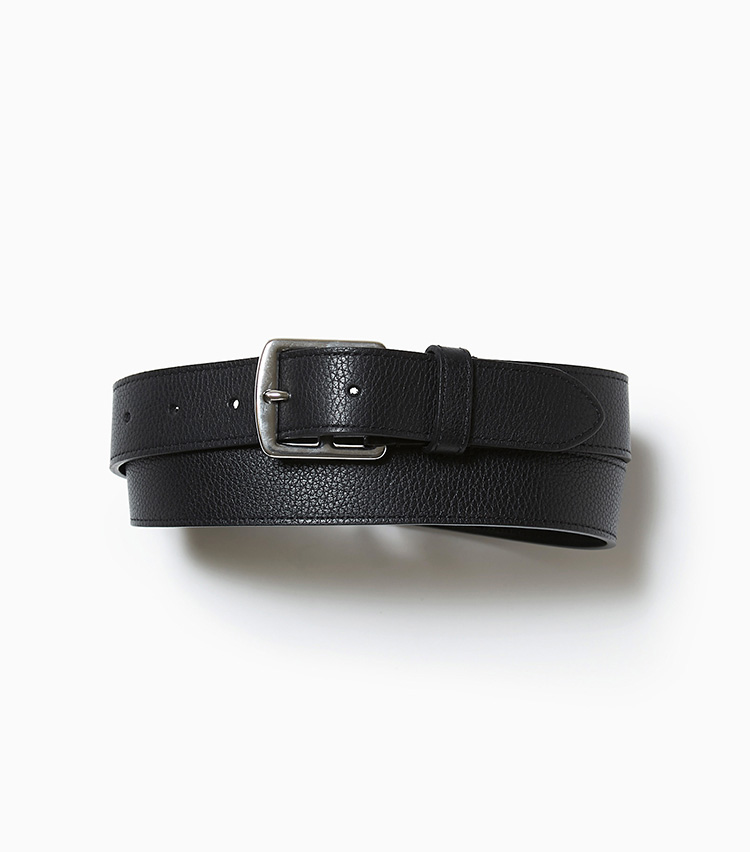 イタリア屈指のレザーブランドに、通常は取り扱っていないグレインレザーで別注。繊細な凹凸の黒革とシンプルなバックル、そのコンビネーションが最高にエレガントだ。1万8000円(ビームス 六本木ヒルズ)