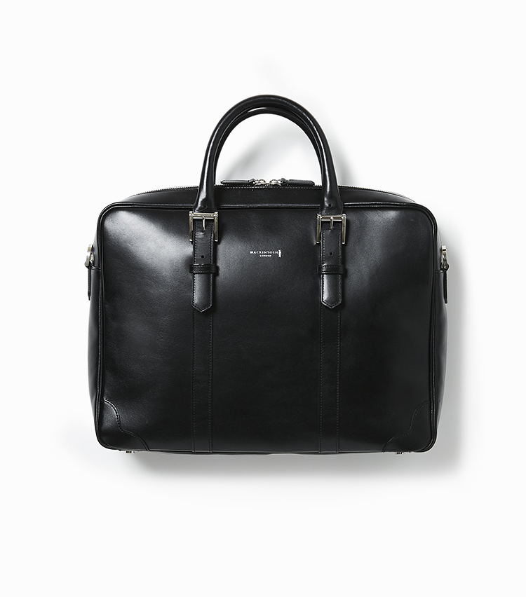 26.ブリーフケース上質な艶をたたえたソフトブリーフ。B4サイズの書類が入るように設計された機能的な作りで、マチ幅を上にむけて若干すぼませることで容量と持ちやすさを両立させている。しっかり自立する底鋲、長さを調節できるハンドル、ショルダーストラップ付きで2WAYで使える仕様など、細部まで隙のない出来ばえだ。縦29×横39×マチ8.5㎝。6万3000円