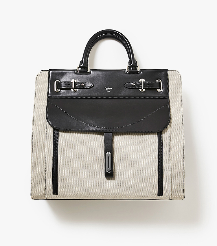 熟練職人がハンドメイドするミラノのラグジュアリーバッグブランドは、セレブリティの一生モノとして人気。なかでも、フロントポケット付きのトートはブランドの代表作。日本で手に入るのは同店のみだ。縦40×幅34×マチ13.5cm。31万円(バーニーズ ニューヨーク カスタマーセンター︎)