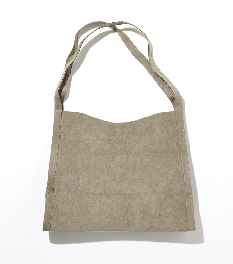 リッチな風合いのエコスエードを採用した使い勝手の良いトート型のシンプルなデザインが大人の印象。肩掛けできるハンドルの長さや、使わないときは折り畳んで持ち運びもできる。ウォッシャブル仕様のため、汚れても気軽に洗濯して何度でも使えるので、この上品な雰囲気で仕事帰りに買い物をしても違和感なくマッチ! 自然環境に配慮した大人のエコバッグだ。縦33×横40×マチ22cm。1万9000円(バーニーズ ニューヨーク)