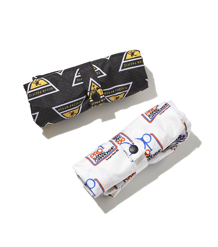 グラフィカルなプリント柄が1980年代の米国西海岸のサーフカルチャーを彷彿させる。持ち手に付いたスナップボタンを使えば、クルクルとたたんでコンパクトになるので、鞄の中に携帯することができる。価格も手頃なので、柄違いで大人買いするのも面白い。各2000円(日本橋髙島屋S.C.本館CSケーススタディ)