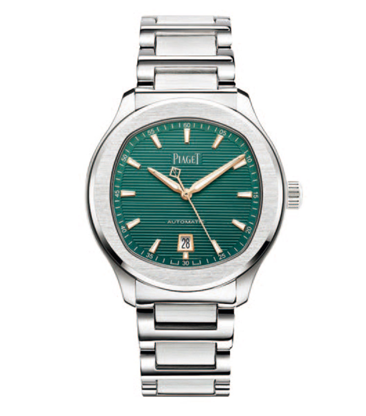 ピアジェらしいエメラルドグリーン・ダイヤルの限定モデル。植字インデックスと針をPGとし、華やかさを高めた。スポーティなブレスレットウォッチでも、ケース厚は9.4㎜と薄く、エレガント。限定888本。自動巻き。径42㎜。SSケース&ブレスレット。131万2000円(ピアジェ コンタクトセンター)