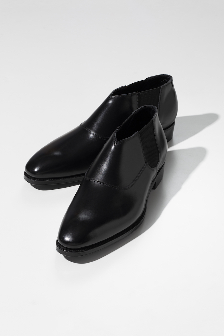 ひし形の線を描くダイヤモンドキャップトゥが非常にクラシックでエレガント。クラシックな趣の「1204」ラストを採用し、手仕事で立体感を出したフィドルウエスト仕様で仕上げられ、トップグレードのハンドソーンウェルテッド製法でつくられるに相応しい一足だ。アッパーは肌目が極めて細かく、もっちりとした極上のヨーロピアンボックスカーフを使用。ライニングはディアスキン。専用のシューツリー付き。11万円