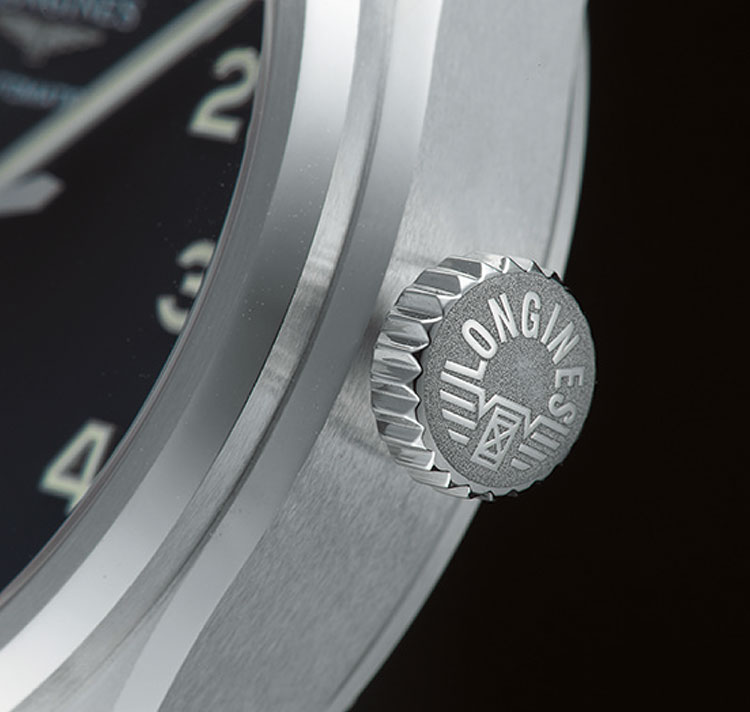 こうしたロンジンと冒険家たちのパイオニア精神を受け継ぎ、モダンな要素を加えて作り上げたモデルが「スピリット」だ。マットブラックの文字盤は、アワーマーカーを窪ませた段付きの立体構造となり、高く切り立つアプライドのアラビアンインデックスを配して視認性抜群のスタイルに。ケースは上品な小振りの37mmで、操作性に優れた大型リューズを備える。また内部には、シリコン製ひげゼンマイを採用したCOSC認定クロノメーターのムーブメントを搭載。文字盤6時位置の歴史的なファイブスターが、その高精度ぶりとクオリティの高さを物語る。