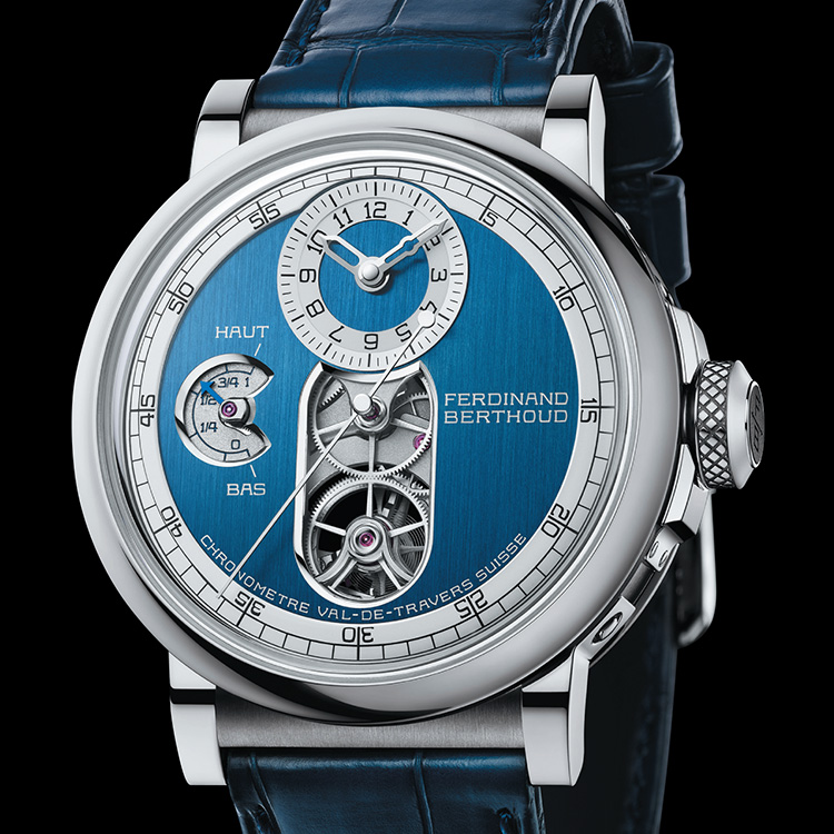 搭載するCal.FB-T.FC-2には、フュゼ・チェーン式の伝達方法をとるコンスタントフォースの装置を採用。従来のように香箱上ではなく、フュゼの中央に配置されたディファレンシャルにより巻き上げを行う。この機構によりトルクが平均化され、時計の精度が安定する。