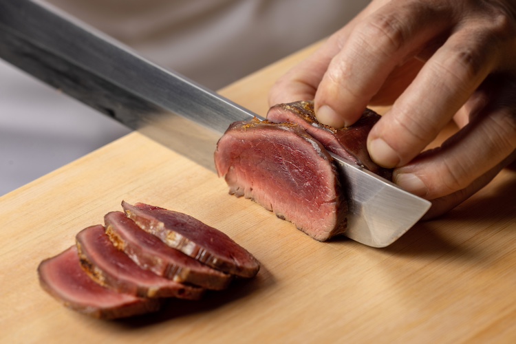 特に鹿肉は、信州が誇る熟練の猟師がこだわりを持った方法で処理をした特別なジビエ。急所への一発で仕留めた鹿を、捕獲後すぐに解体処理を現地にて行い、-60℃で急速冷凍することで、クセの元となる臭みを極限まで抑え、鹿肉本来の旨味を引き出している。