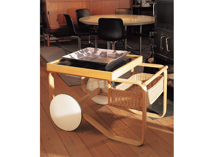 フィンランドの巨匠アルヴァ・アアルトのワゴンの名作。1936~1937年。アルテック社。「札幌のインテリア店で見つけたもの。’60年代に仕入れた在庫品だったので安価でした」。