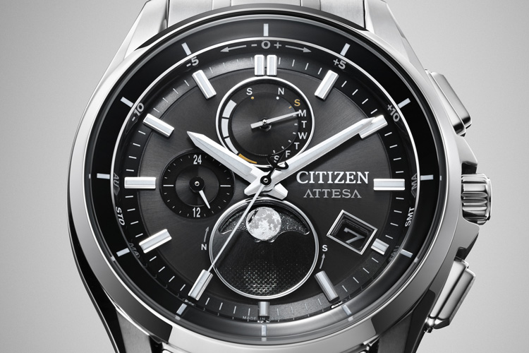 アテッサは、シチズンの高度な技術力を象徴するチタニウムウオッチブランド。1987年の誕生以来、機能、つけ心地、耐久性とすべての面において時計界をリードする洗練されたデザインのモデルを展開し、多くの人を魅了してきた。中でもいま、感度の高い人たちの間で話題となっているのが、画期的なムーンフェイズ機構を搭載したエコ・ドライブ電波時計の「BY1001-66E」だ。
