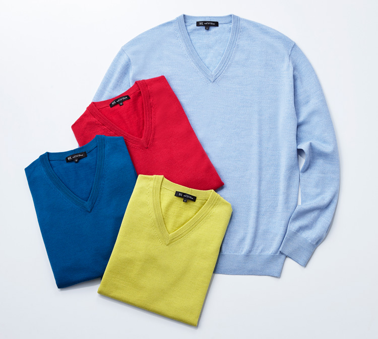 南フランス・コートダジュール地方発祥のカジュアルブランド〈アッシュ・エル〉。春を感じさせるカラフルなニットが、いつもの装いをさりげなくリフレッシュしてくれる。