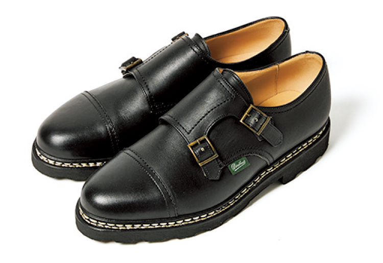 アウトドア靴の技術を品のよい街靴へ落とし込んだ佇まいが魅力のパラブーツは、フランス本国では国民靴と親しまれているほど。計120種超を揃える東京最大規模の品揃えを誇る丸の内店では、日本第1号店の開店時に輸入されたというグルノーブルの家具工房製什器をレストアして使用。
