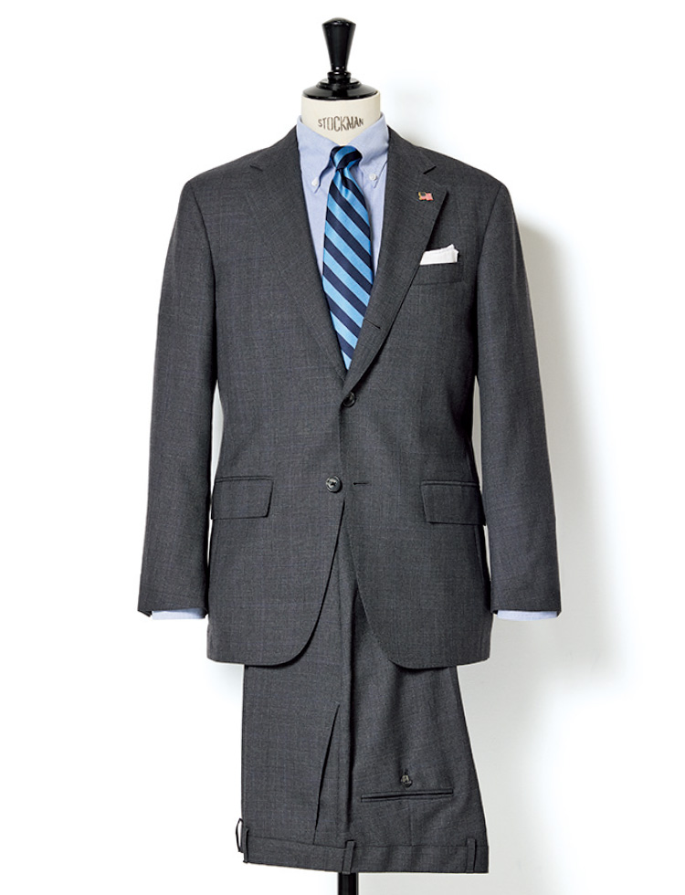 ブランドの原点「No.1サックスーツ」の新作。アメリカンウーレン カンパニーのウールを採用し、ニューヨークの名門ファクトリー、ロチェスター テーラード クロージングで縫製。往年のボックスシルエットが魅力。