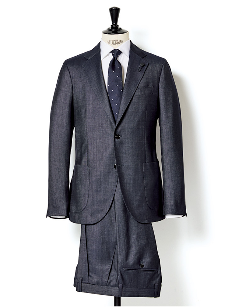エクストラファインウールを75%、キュプラを25%で混紡した独自のデニム生地を使用。さらっと高級感のあるタッチで、ノータイによる現代的ビジカジスタイルから、カジュアルダウンしたフォーマルまでマッチ。