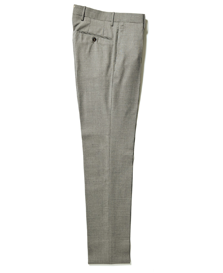 イタリアの老舗パンツブランド「スローウエア インコテックス」のサマーウールの生地を用いた涼しげなドレスパンツ。人気モデル35J型を少しワイドフィットに進化させた日本限定モデルは履きやすく、オンだけでなくオフでも活躍してくれる。