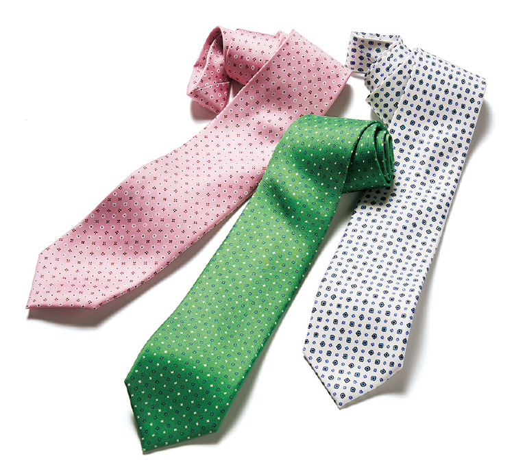 同ブランドを象徴するセッテピエゲタイ。打ち込みのしっかりした上質なシルクを用い、熟練職人が手作業で仕立てた一本だ。英国製ハンドプリントシルクならではの発色も鮮やかで春先の装いにも◎。