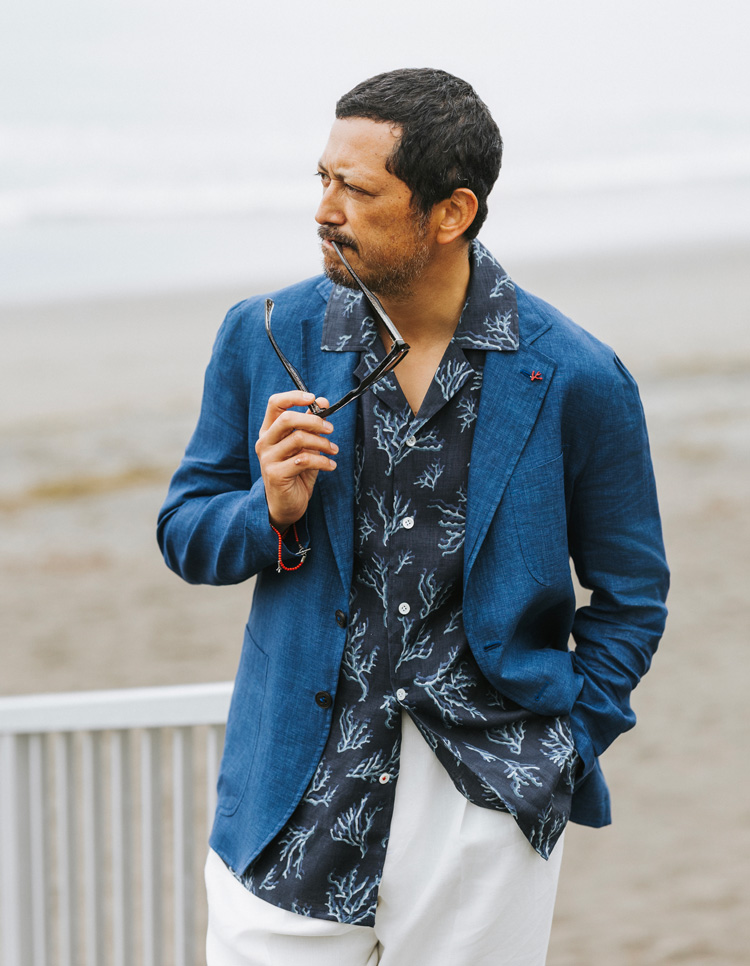 本作の魅力は、見た目は端正なジャケットでありながら、袖を通した瞬間の着心地が驚くほど軽やかなこと。従来のジャケットに使われる副資材や芯地を用いず、シャツに使う上質なコットンやリネンで仕立てることで、まるでシャツを羽織るような柔らかさを実現している。軽やかな素材感に、「イザイア」ならではの鮮やかな発色が重なることで、春夏の着こなしに品のある華やぎを添えてくれる。