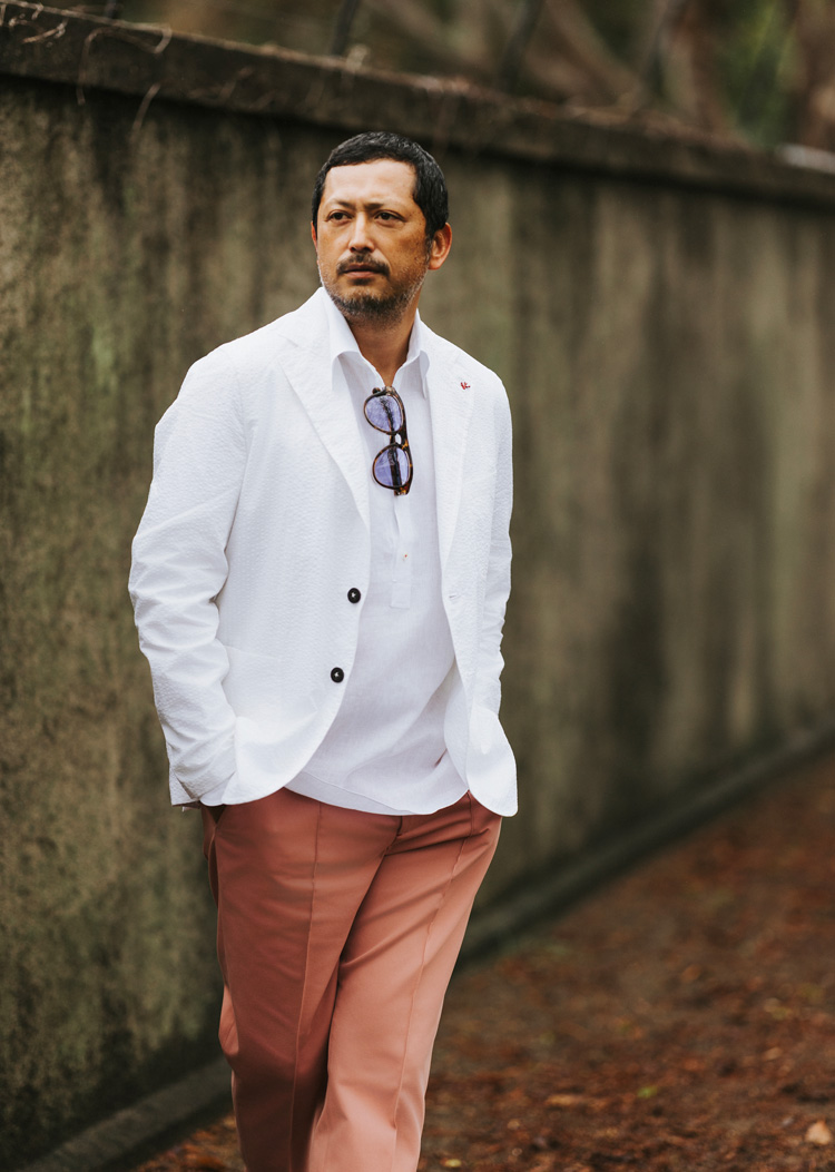 それでいて、「イザイア」らしい構築的で美しいシルエットはしっかりと健在。軽やかな着心地でありながら、テーラードならではの端正さを損なわない。その絶妙なバランスが、今の気分にぴったりだ。
